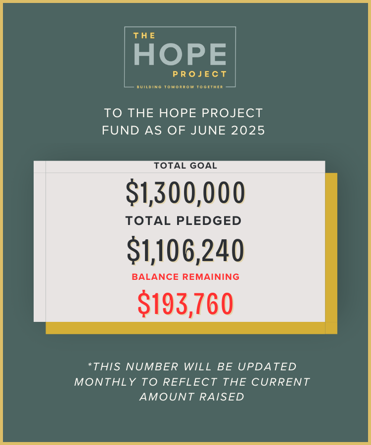 Please join us by supporting The Hope Project: Building Tomorrow Together. Your investment will leave a lasting legacy of hope and transformation for generations to come.
